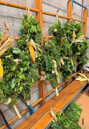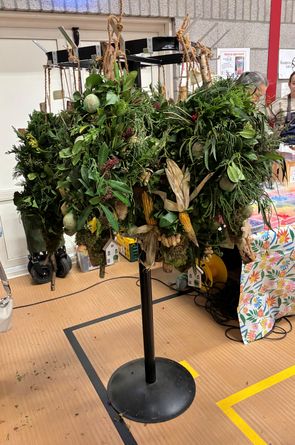 De hele week verzamelden onze bloemschiksters met de bloemschikcommissie groen en alle andere materialen om met elkaar vogelstokken te maken.